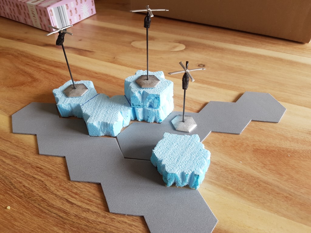 Der Vorteil ist, dass Du das Moosgummi einfach mit der Schere zuschneiden kannst. Gerade bei vielen Hexfeldern, ist das Zusägen ja ein richtiger Krampf.