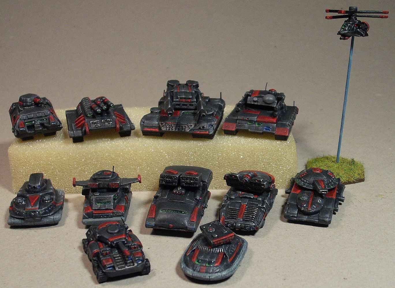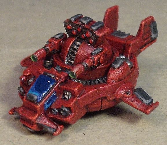Eigentlich artfremde, denn es handelt sich um Tsuiseki aus der CAV Reaper Serie (die besseren, noch aus Metall). Hatte die mal geschenkt bekommen, lange Zeit nicht bearbeitet, weil ich so wenig mit LRJ und Luftunterstützung zu tun habe. Nun aber als Lyranische Garde Nahunterstützung bemalt.