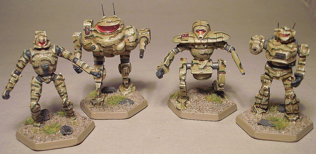 The three Arkab Legions paint their 'Mechs in tans and dark greens.