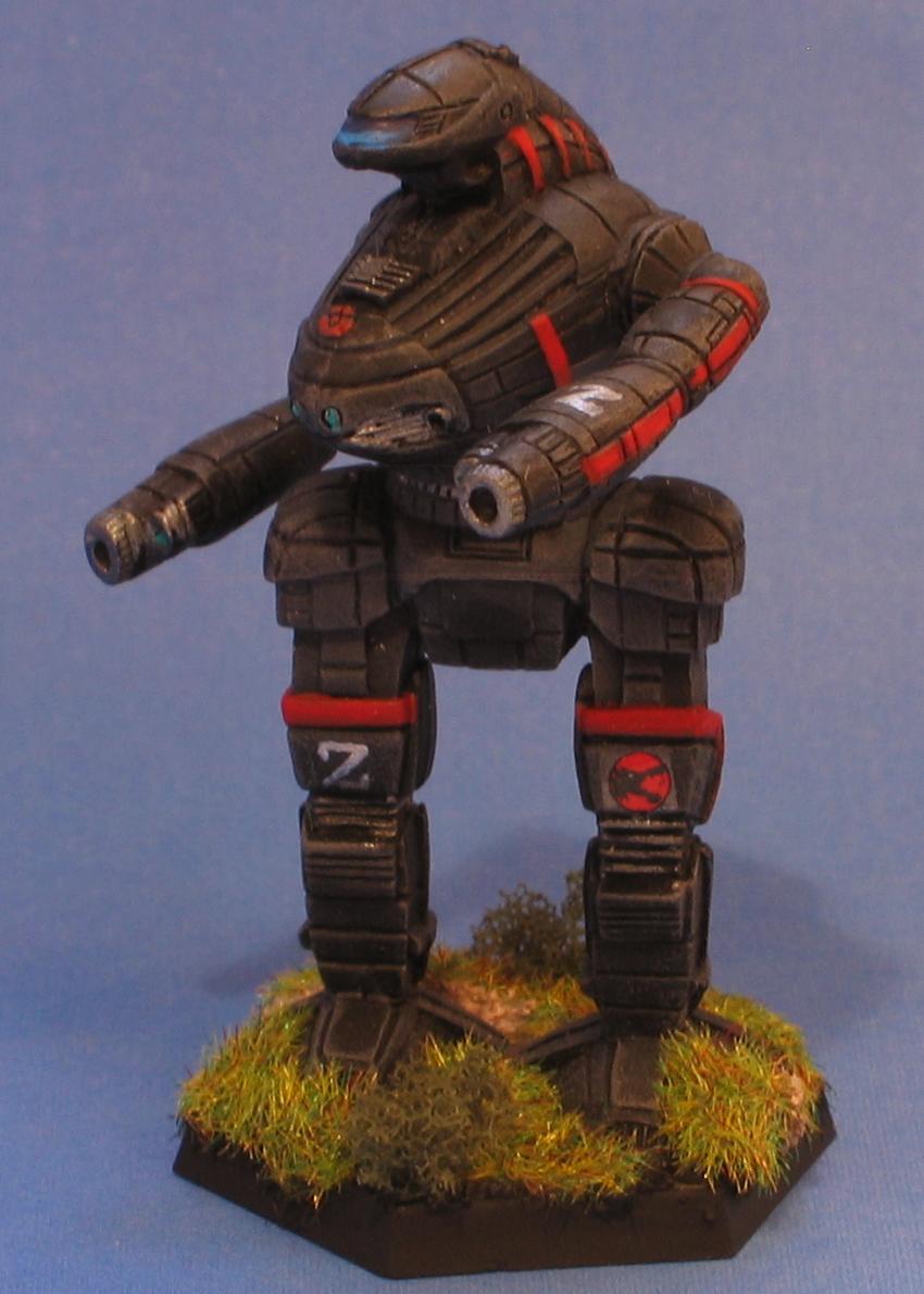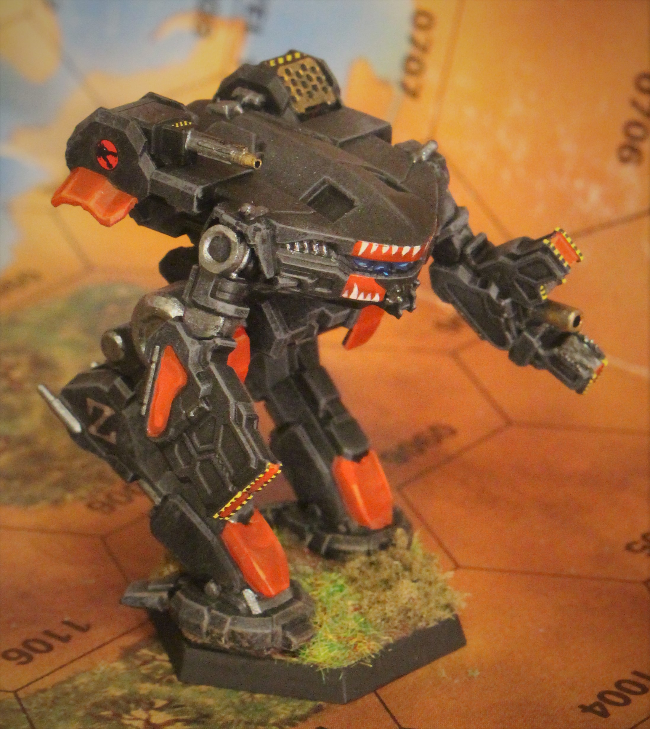 Der Archer ist Jaime Wolfs persönlicher Mech. Der ist tatsächlich blau bemalt mit goldenen Akzenten. Ich habe mich bei der Bemalung stark an Cover des Romans Wölfe an der Grenze orientiert: