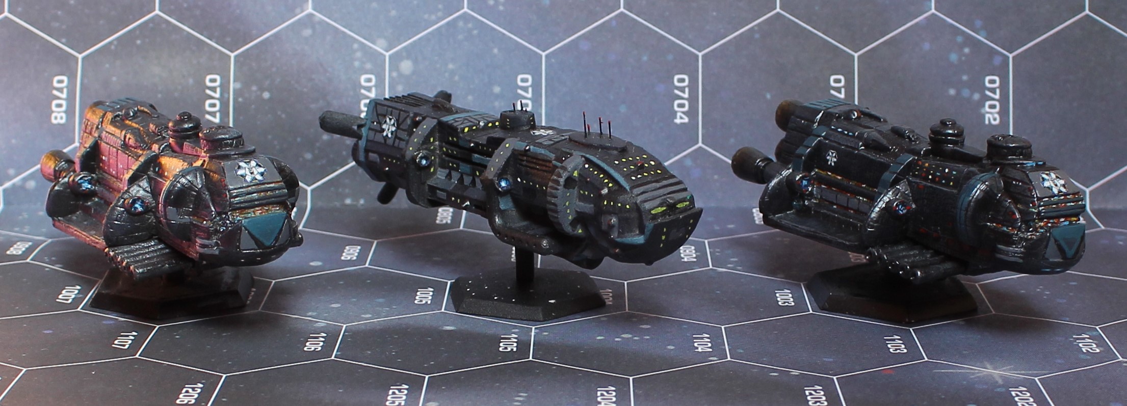 Und ein Gruppenfoto aller Leviathan, die ich bemalt habe. Das linke Schiff geht nun allerdings auf Reisen in seinen neuen Heimathafen.