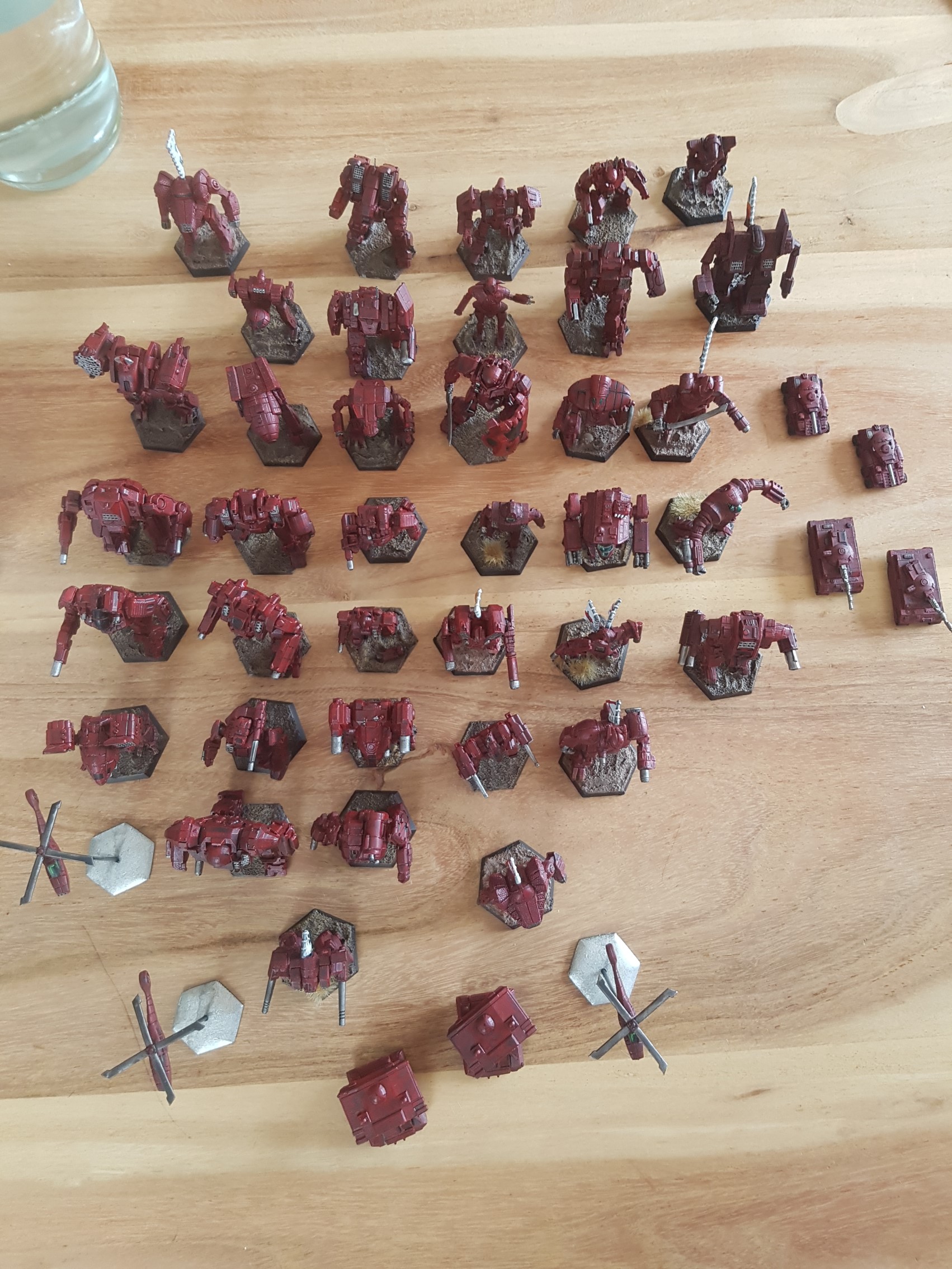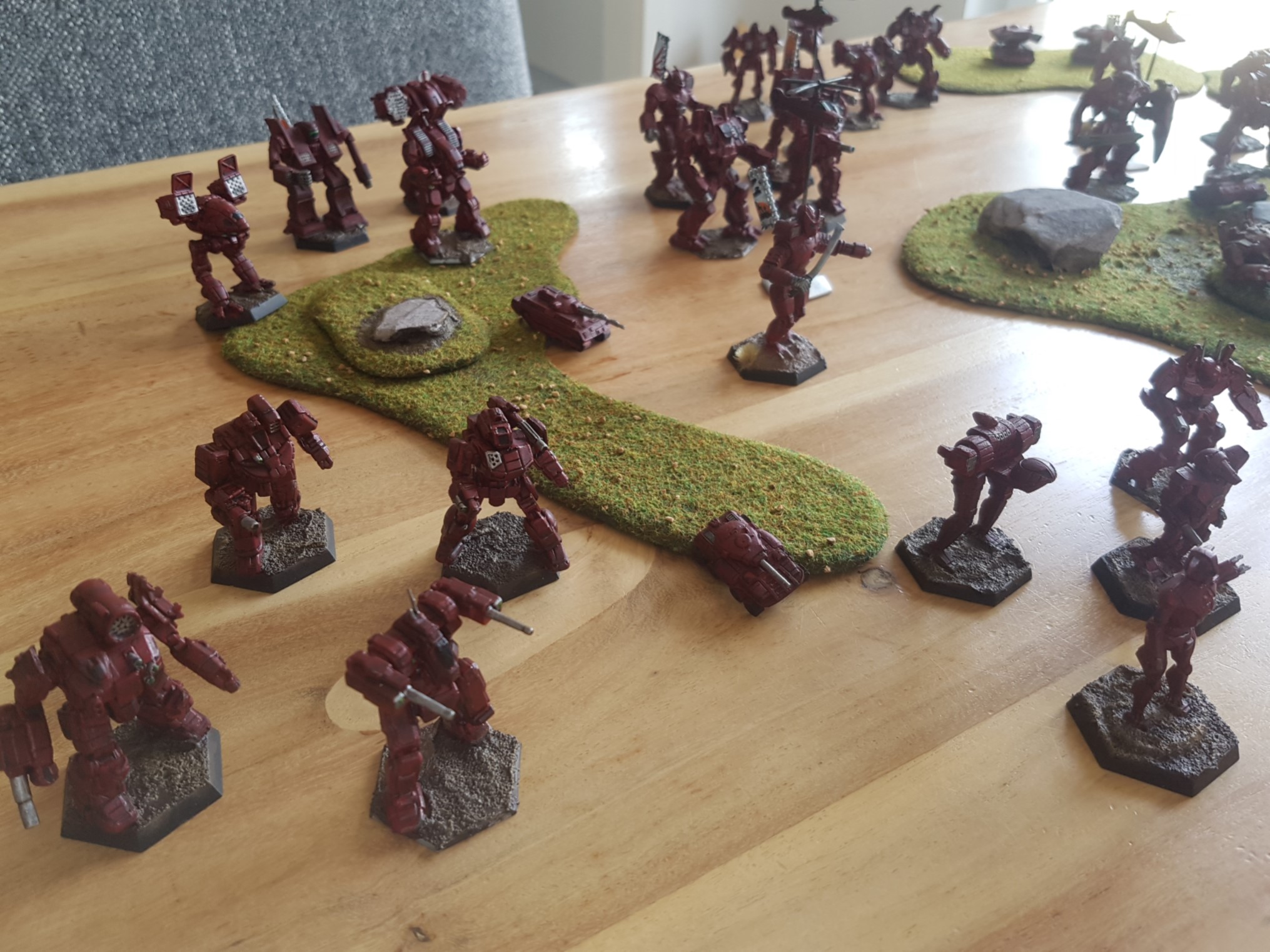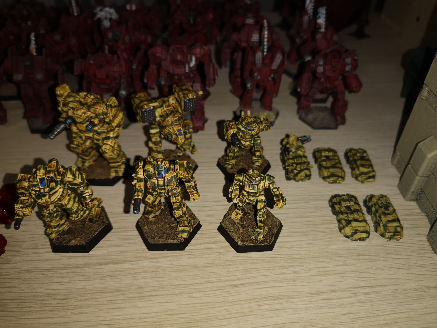 Darunter sind neue Mechs aus dem KS, IWM Minis und 3D gedruckte Minis.