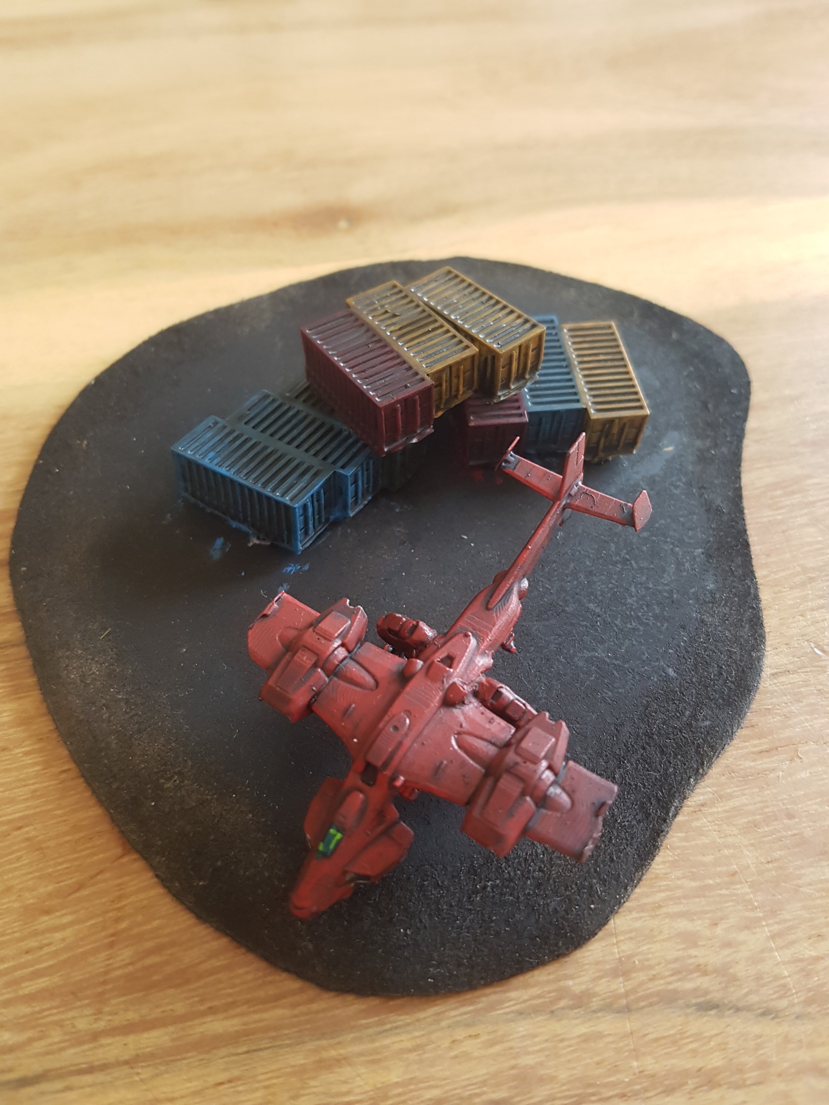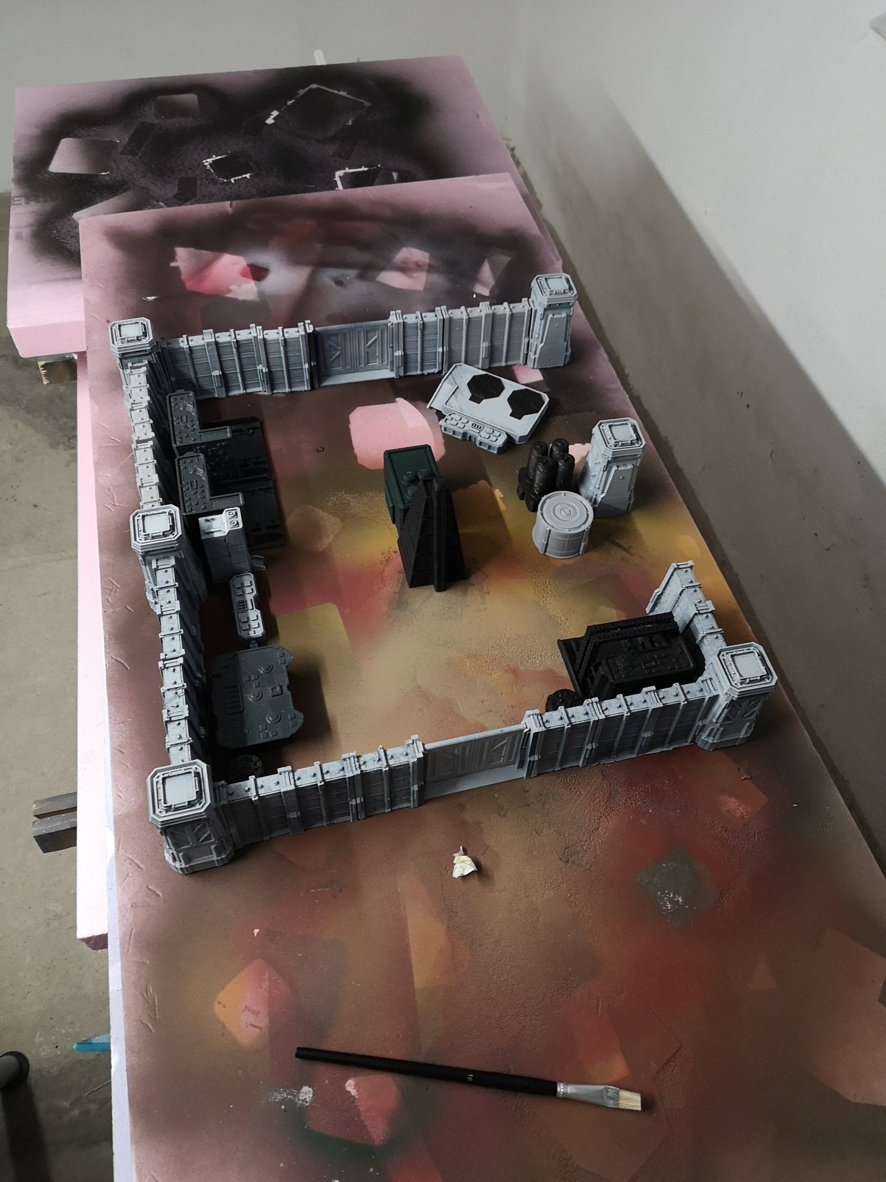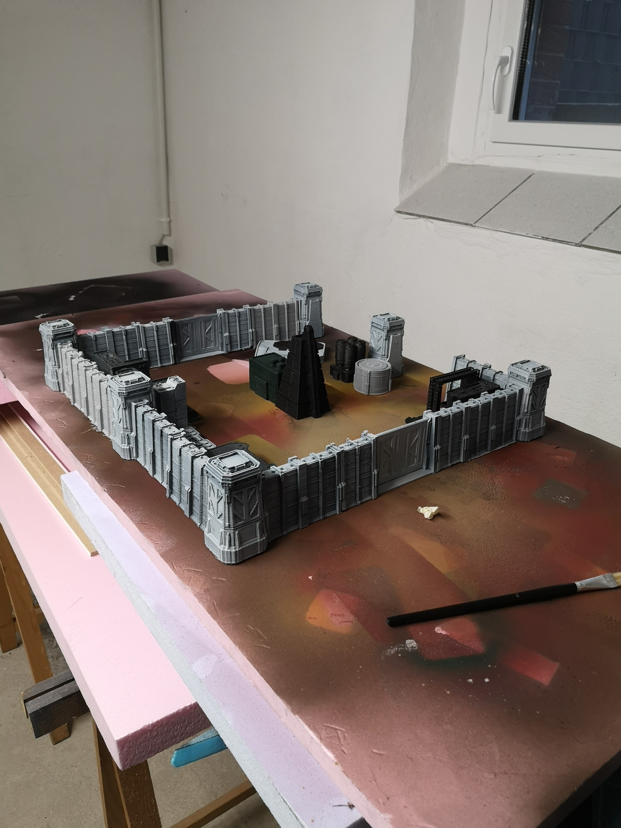 Die Gebäude sind gekaufte STL-Dateien. Ebenso das Dropshuttle oben rechts im Bild.