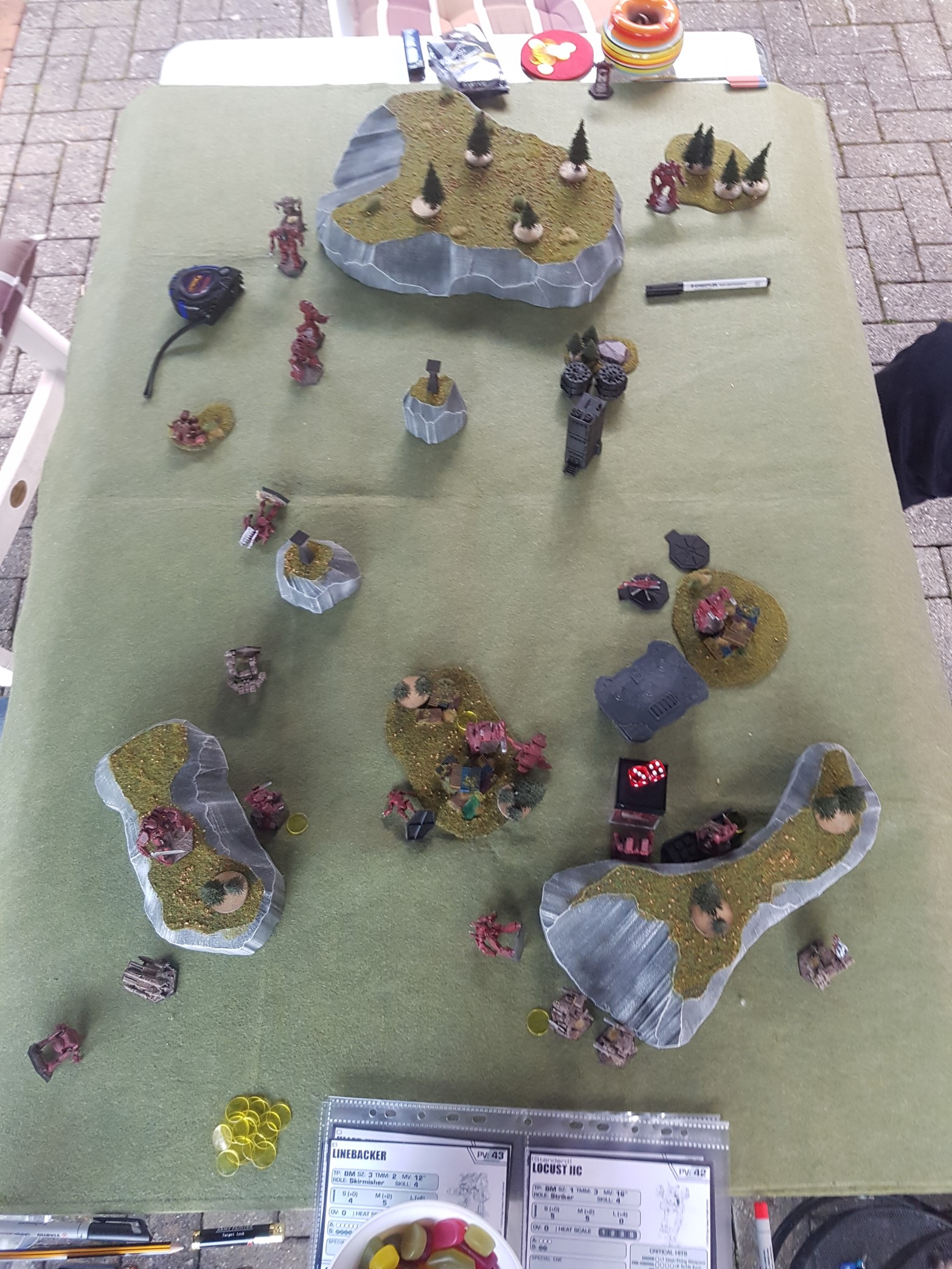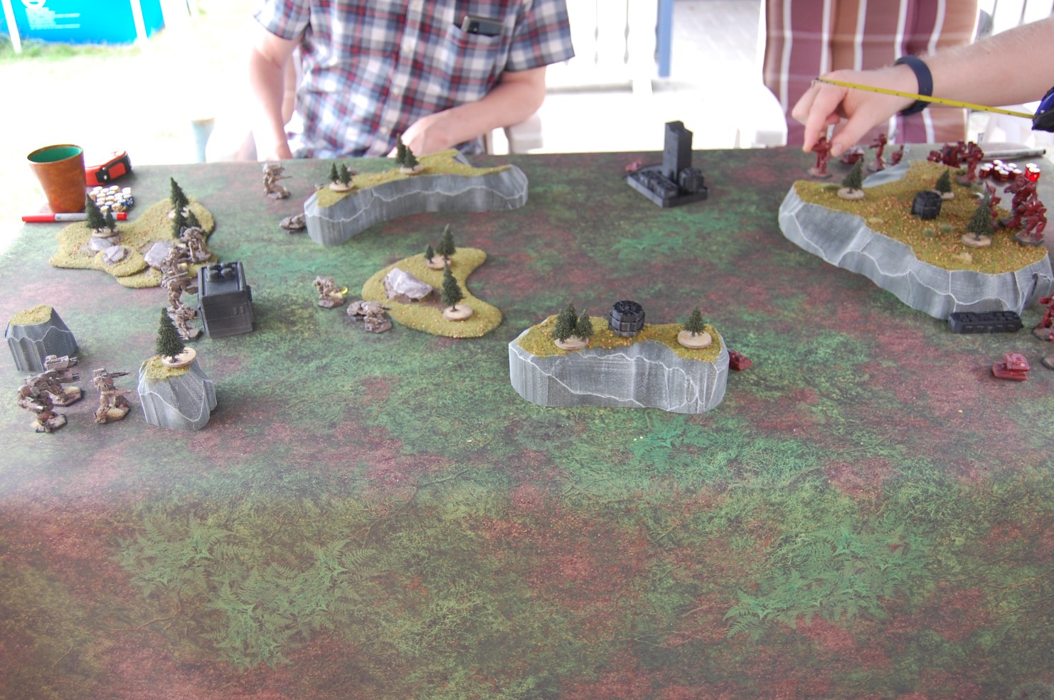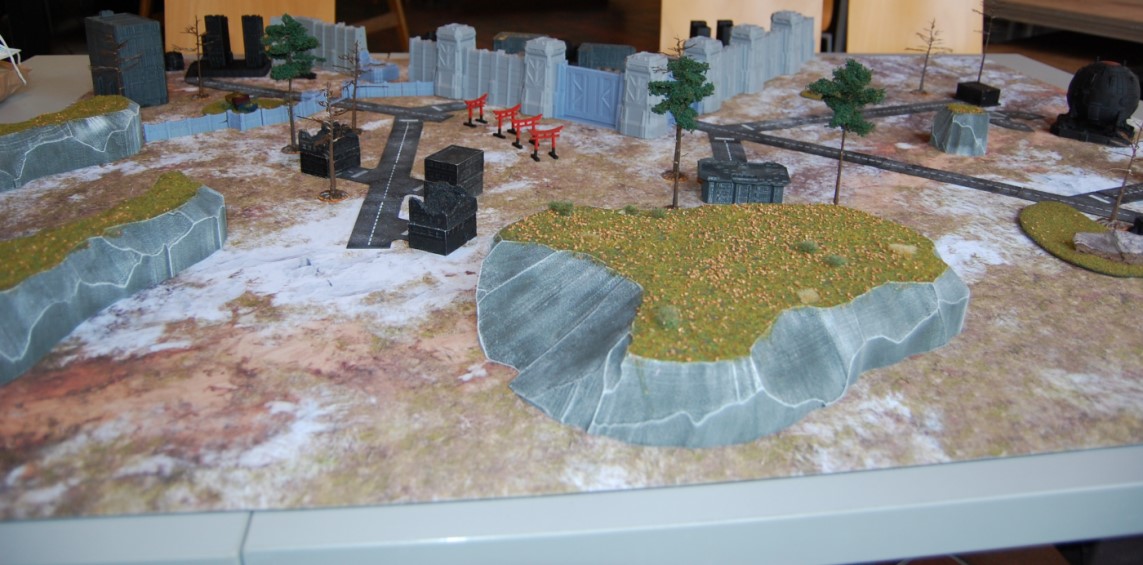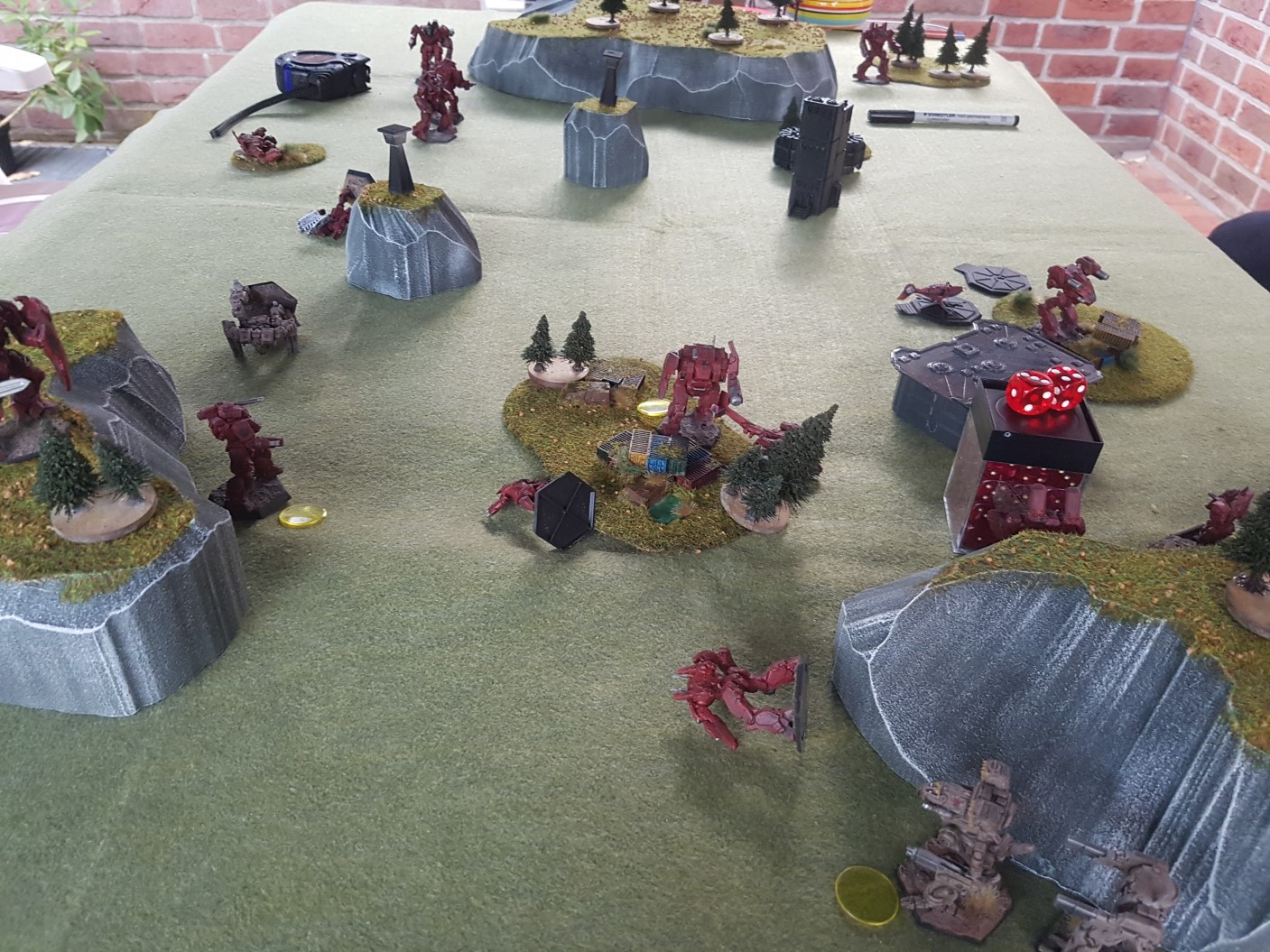 am heutigen Samstag fand in Schüttorf die monatliche CON statt. Endlich haben wir es geschafft in Sachen BT wieder dabei zu sein. Nachdem ersten Dämpfer von nur zwei anwesenden Spielern (10 hatten sich angemeldet) ließ man sich nicht unterkriegen und baute rasch das nahe zu fertige 3D-Gelände auf.