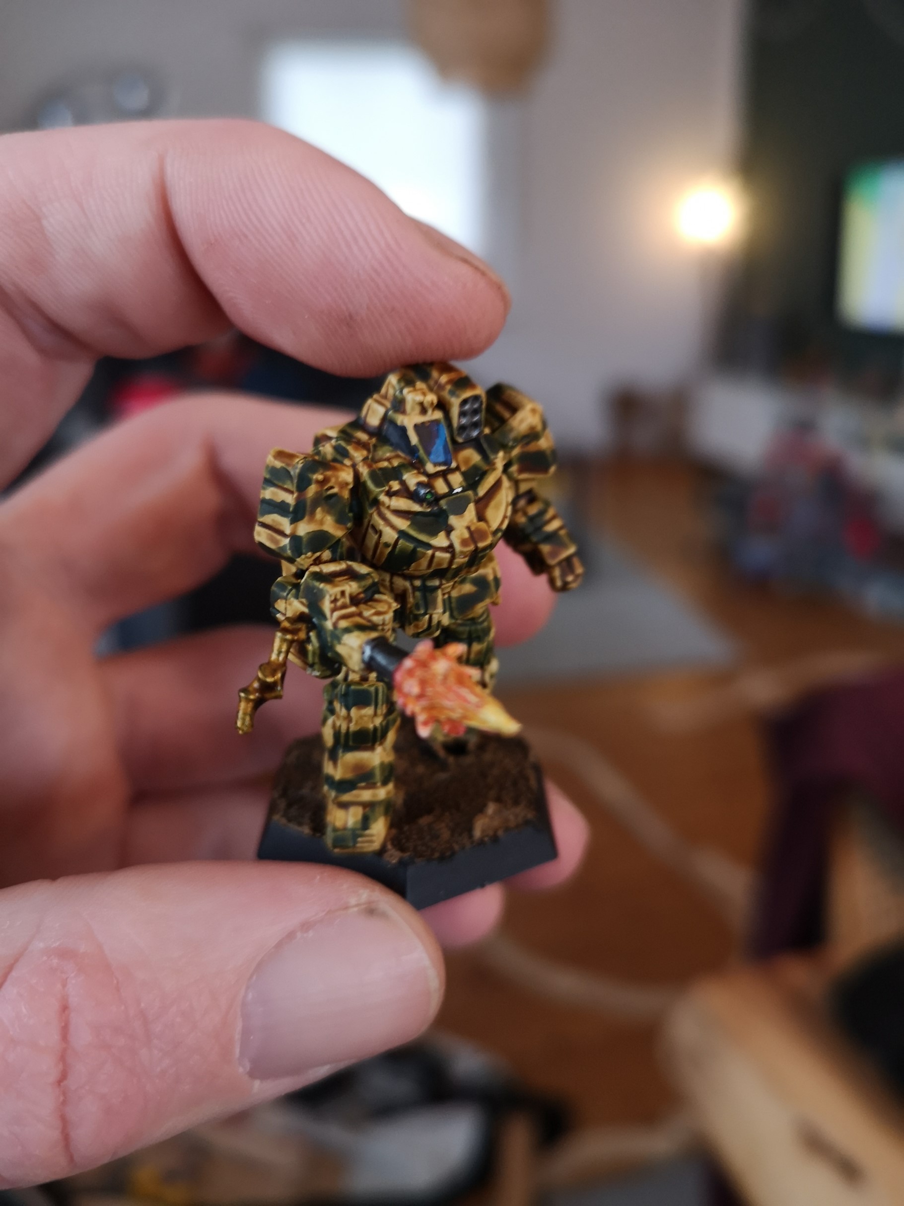 Die Bemalung ist wirklich im Nu gemacht und gebremst wird man lediglich durch die Wartezeit beim Trocknen der Contrast-Farben. Hier würde ich auch nicht empfehlen dies mit einem Fön zu beschleunigen, da die Contrast-Farben sehr zähflüssig (im Vergleich zum Wash und Acryl-Farben) sind. Bei mir gabs, gerade in den Vertiefungen, Risse. Kann aber auch ein Anwenderfehler sein.
