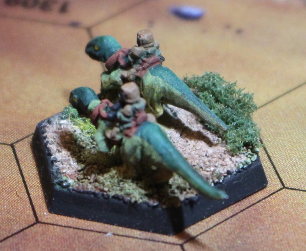 Habe tatsächlich insgesamt 3 Counter mit diesen Sauriern. Jeder Counter repräsentiert einen Zug/ein Platoon. Damit wäre das eine komplette Company an berittenen Sauriern. großes Grinsen
