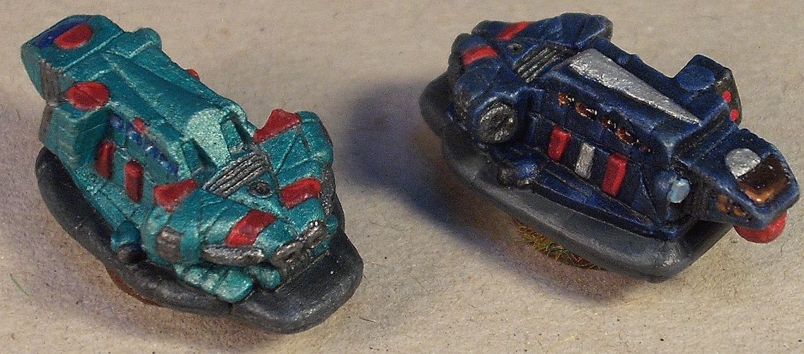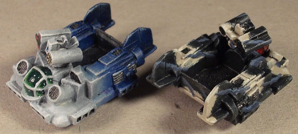 Und dann wäre da gleich die erste Rarität: Eldingar. Bewaffnete Hover-Transporter für die Geisterbären. Ich nenne sie deshalb Raritäten, weil zum Erstellzeitpunkt dieses Posts noch immer keine von denen auf CSO (der offziellen Painterseite für Battletech) eingestellt wurden. Das mangelnde Interesse führe ich darauf zurück, dass