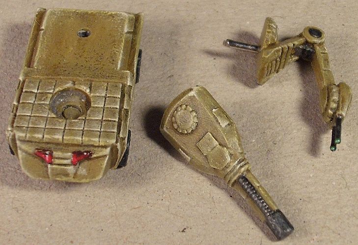 Außerdem wurden zwei Thor Artilleriefahrzeuge fertig. Zusammen mit den beiden Danais kann ich dann jetzt eine Artillerielanze mobiler Thumper aufstellen. Bei den Minis handelte es sich um alte Bleizinnmodelle, bei denen natürlich die winzigen Laserläufe abgebrochen waren. Neue eingestiftet, aber damit kein Platz um den eigentlichen Laserkopf ebenfalls zu magnetisieren. Da ich bei Bleizinn allerdings der Meinung war, dass die Türme generell bruchgefährdet sein dürften, habe ich sie mit Stiften für den Transport demontierbar gehalten. Die Kanonen sind wiederum magnetisiert.