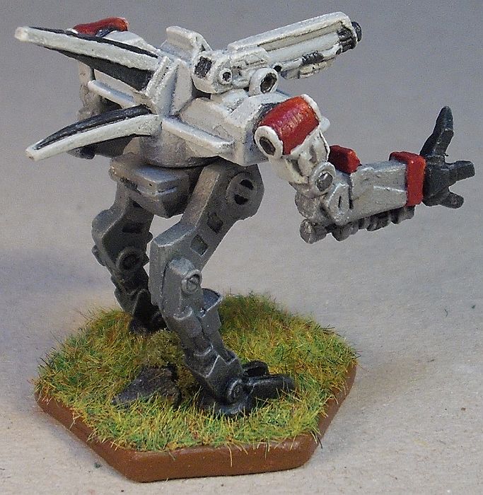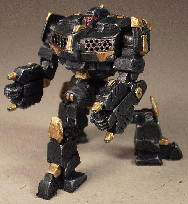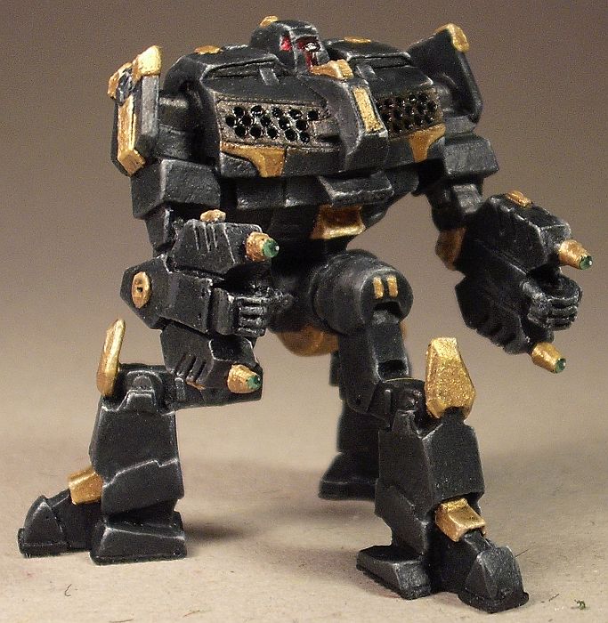 Die Maschine wird ebenfalls unter ihrer Herkunft aus dem MWDA, aber auch an der idiotischen Grundausstattung leiden (der lyranische -L8 ist dagegen ein geradezu schnörkelloses Mistviech und das Zombiemodell mit gehärteter Panzerung in Landungsschiffstärke und einer Clan-PPK im Kopfturm sind ein ganz anderes Thema), dennoch hat es mich auch bei dem erstaunt, dass noch keiner der Edelpinsler sich mal an dem hier versucht hat.