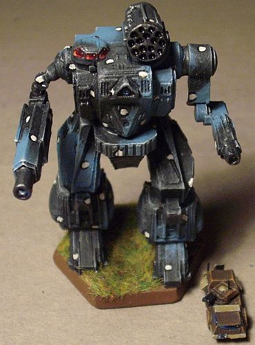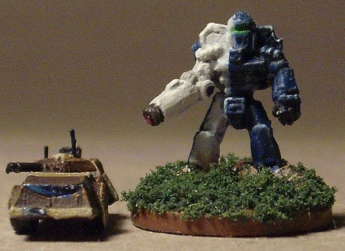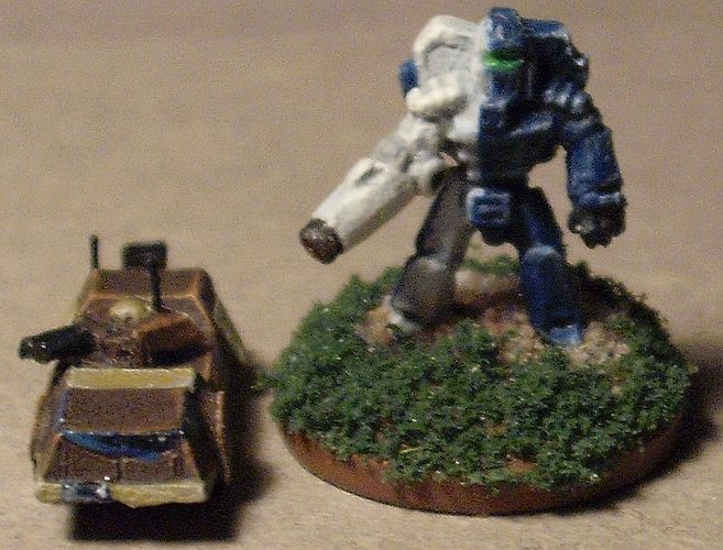 In meinen Augen ist es das einzig richtige, was ich bereits auf der Amiseite von BT.com gesehen habe: Die Minis mitsamt ein paar 6mm-Infanteristen auf eine Base packen und entweder so oder als Marker für mechanisierte Infanterie nutzen.